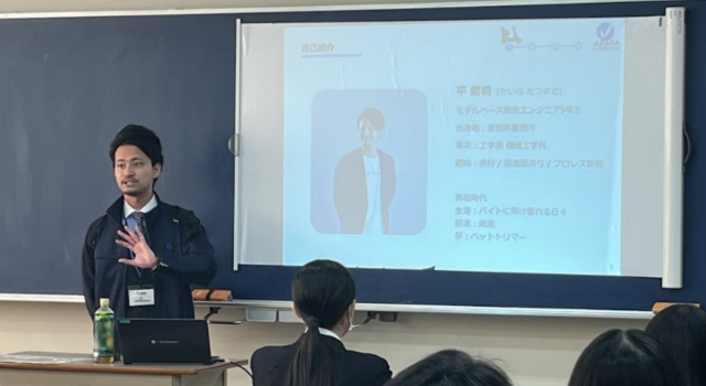 高校生向けに行われた「職学」。今回の授業では、実際に自動車業界で働くモデルベース開発エンジニアが登壇し、「エンジニアって何をする人?」「モデルベース開発ってどんな仕事?」といったテーマを、具体的な事例を交えてわかりやすく解説しました。たとえば、大人気のカーレースゲームを例に「実際の車両特性をバーチャル空間で再現する」というモデルベース開発の概念を説明したり、車の開発に莫大なコストがかかる背景など、普段の生活ではあまり意識されない自動車業界の一面を紹介しました。